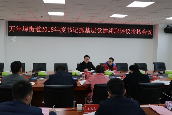 3月7日下午,萬年埠街道召開2018年度書記抓基層黨建述職評議考核會議。區委組織部副部長陳先法、區委非公工委辦主任肖韓到會指導。街道班子成員、各黨組織書記參加會議。街道黨工委書記許春雨主持會議。