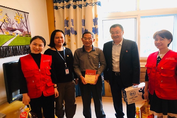孫師傅是社區的一名老黨員,來到孫師傅家時,孫師傅激動的說:“感謝社區黨委對我的關心,感謝英大財險領導們對我的關心。既給我送來生活食糧,又給我送來了精神食糧,我一定會認認真真學習,緊跟黨的步伐。”