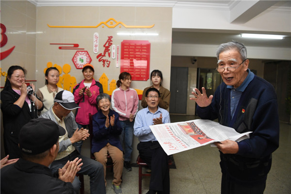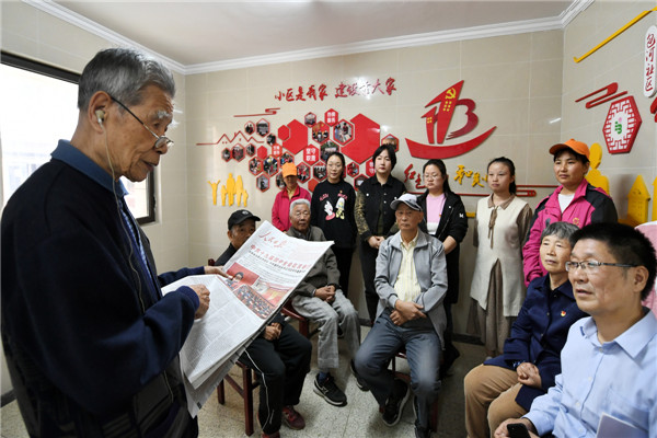 在糧食局A棟一單元,全國理論宣講個人楊澤田書記正在帶領著樓棟黨員居民骨干、樓棟長以及熱心居民,認真學習領會黨的十九屆四中全會精神。楊老用通俗易懂、最接地氣的語言把中國共產黨不忘初心、牢記使命的宗旨理念和為實現中華民族偉大復興的中國夢不懈奮斗的決心,傳遞給黨員群眾,并用他們喜聞樂見的方式深刻闡釋了黨的十九屆四中全會精神,讓老百姓聽得懂、能領會,可落實。