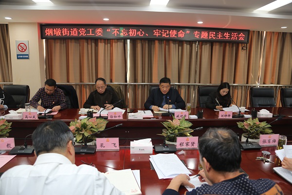 根據區委“不忘初心、牢記使命”主題教育的統一安排部署,12月9日下午,煙墩街道黨工委于街道四樓會議室召開“不忘初心、牢記使命”主題教育專題民主生活會。區委主題教育第十巡回指導組組長徐和平,成員劉錚錚,謝唯怡、街道黨工委班子成員、街道黨工委主題教育領導小組成員參加了此次民主生活會。