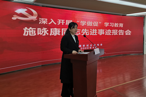先進事跡報告之后,社區黨委副書記鐘震年結合自己在疫情期間與施詠康同志的一次接觸表達了自己對施部長的緬懷與敬意,最后他號召全體社區工作人員和轄區廣大黨員干部要向施詠康同志這樣的優秀共產黨員學習,結合之前“不忘初心、牢記使命”主題教育的學習成果,立足自身崗位、結合工作實際深入開展“學做促”學習教育,做到政治堅定、作風優良、業務精湛,為社區打造“住下就不想走”的和美家園貢獻自己的力量。