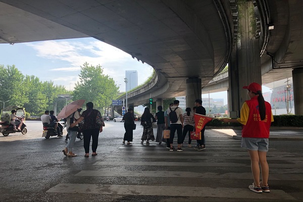 活動中,社區黨員志愿者們來到人流量、車流量大的馬鞍山路與南一環路交口,向過往行人進行宣傳,引導教育大家禮讓斑馬線,帶動市民提升文明交通理念,遵守交通規則,勇做城市的文明使者。
