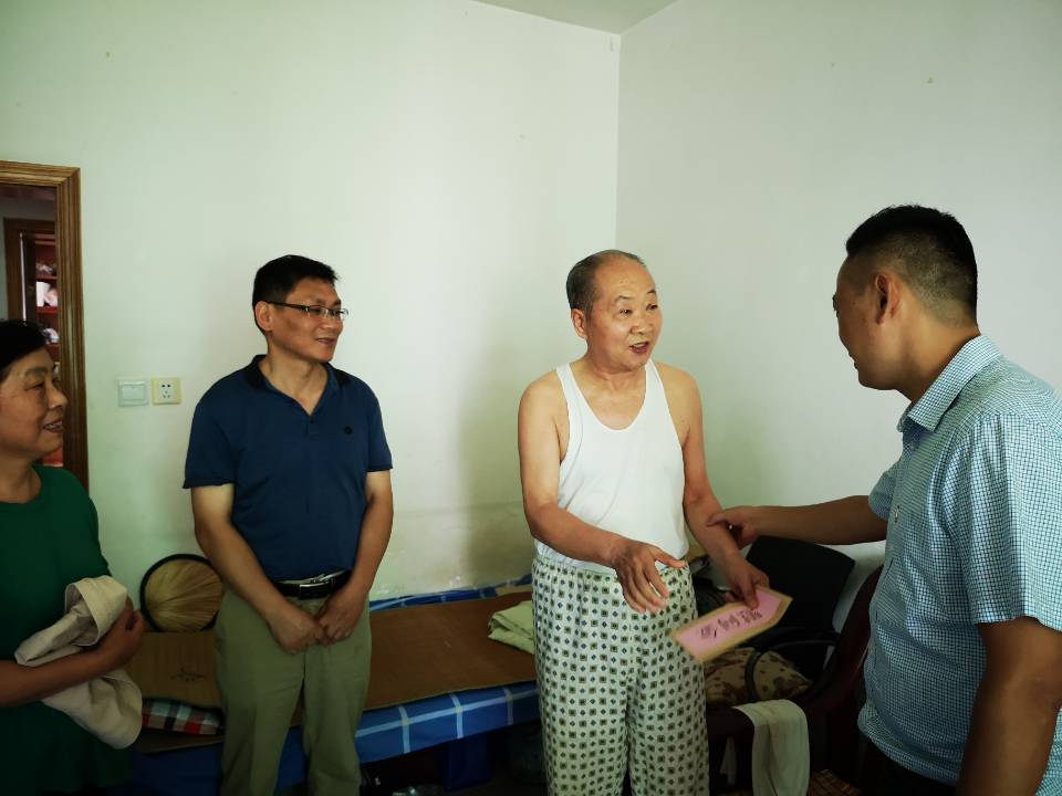 7月1日,炳輝社區(qū)黨委開展了慰問社區(qū)黨員活動,此次慰問的對象除了困難黨員還有在和美小區(qū)建設(shè)中發(fā)揮作用的模范黨員代表。上午10點(diǎn)鐘,包河區(qū)人大常委會主任、黨組書記焦長華等一行首先來到省工業(yè)設(shè)備安裝公司老黨員王大爺家,王大爺平時(shí)支持社區(qū)工作,在和美小區(qū)建設(shè)過程中發(fā)揮自身書畫特長,在居家養(yǎng)老服務(wù)站內(nèi)的書畫室定期開展活動,發(fā)揮余熱。