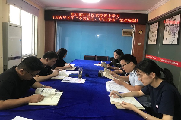 2019年9月19日,為切實提高社區黨委成員的政治站位和思想認識,航運南村社區黨委班子開展集中學習活動。會上,黨委班子成員集中學習了《習近平關于“不忘初心、牢記使命”論述摘編》,使黨委班子進一步領悟初心使命,增強黨的意識,堅定理想信念。