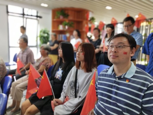 10月1日,包河區包公街道非公企業黨員在“心驛富廣”樓宇黨建服務站內觀看慶祝中華人民共和國成立70周年大會。