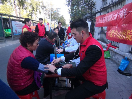 入戶清潔小分隊正熱火朝天地打掃著,同時廣電南小區(qū)內(nèi)志愿義診活動也在如火如荼地開展。小區(qū)附近居住的大多數(shù)都是老年人,社區(qū)工作人員及黨員志愿者為大家宣傳各種民生政策,醫(yī)生護(hù)士給老人們量血壓、檢查身體,耐心細(xì)致的解答居民的提問。