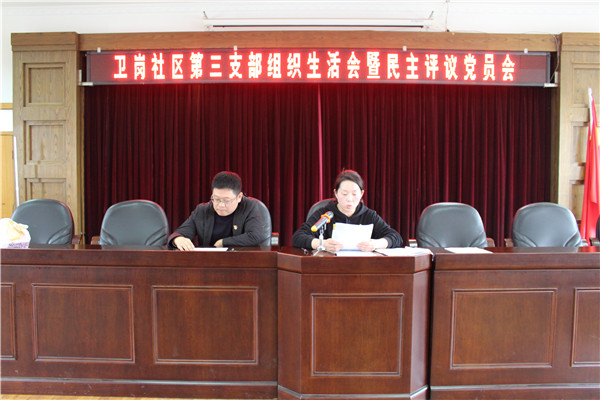為深入學(xué)習(xí)貫徹習(xí)近平新時代中國特色社會主義思想,推進“兩學(xué)一做”學(xué)習(xí)教育常態(tài)化制度化,提升基層黨組織組織力,嚴格黨員教育管理監(jiān)督,按照《中國共產(chǎn)黨支部工作條例(試行)》等規(guī)定和《中共合肥市委組織部關(guān)于召開 2018 年度基層黨組織組織生活會和開展民主評議黨員的通知》(合組通字〔2019〕2號)要求, 3月20日上午,衛(wèi)崗社區(qū)第三支部召開2018年度組織生活會暨民主評議黨員大會。會議由第三支部書記張錦玲主持,社區(qū)黨委副書記朱勇剛同志到會督導(dǎo)。