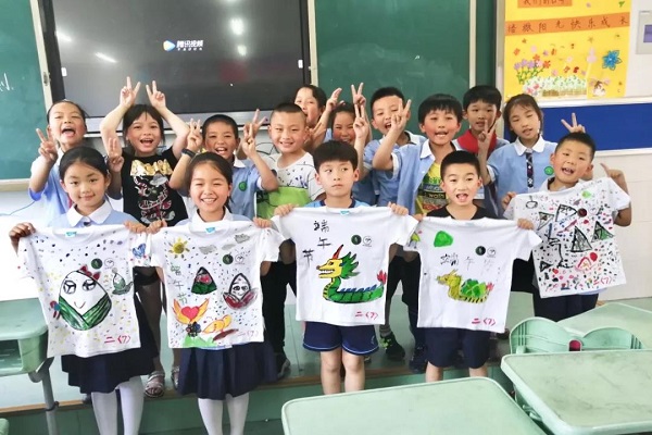 “龍舟、粽子、鴨蛋……”一個個形態各異的端午元素圖案經過同學們的巧手勾勒,在文化衫上栩栩如生。另一邊呢,同學們則在老師的幫助下用廢舊報紙制作“創意龍舟”。接下來的龍舟接力賽更是將整場活動推向高潮。大家相互配合、同舟共濟,共同努力完成了比賽,體味著團隊合作的重要性。