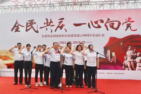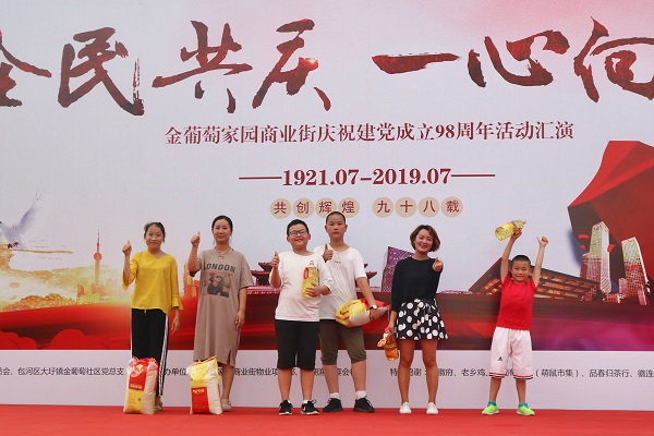 為慶祝中國共產黨成立98周年,包河區大圩鎮金葡萄社區黨總支聯合湖濱物業黨支部于6月28日在金葡萄家園商業街開展了“全民共慶 一心向黨”建黨節主題活動。