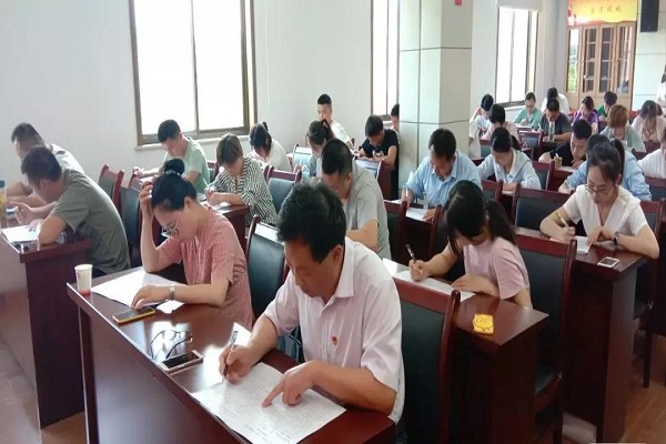 7月3日下午,大圩鎮舉行“學思想、守初心、擔使命”慶七一黨建知識大賽初賽,慶祝中國共產黨建黨98周年,大賽吸引了全鎮24個黨組織72名選手參加。初賽以閉卷考試的形式進行,涵蓋習近平新時代中國特色社會主義思想和黨的十九大精神、黨建基礎工作知識以及區情鎮情等方面內容??荚囘^程中,選手們將考試作為一次再學習、再提升的過程,認真思考,積極答題。比賽結果顯示,東林村黨支部、金葡萄旅游公司黨支部、金葡萄社區黨總支、包河中學黨支部、沈福村黨總支、機關二支部六支代表隊晉級決賽,分別獲得平均93、91、90、88.67、87、86.67分的好成績。