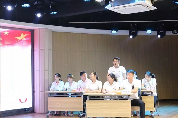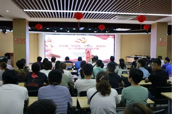 為熱烈慶祝中國共產黨成立98周年,持續鞏固學習習近平新時代中國特色社會主義思想和黨的理論知識成果,激發廣大黨員干部的愛黨愛國情懷和干事創業熱情,7月9日下午,從初賽24支隊伍中脫穎而出的前六名,在金葡萄社區A區文化活動中心參加了“學思想、守初心、擔使命”七一黨建知識競賽決賽。
