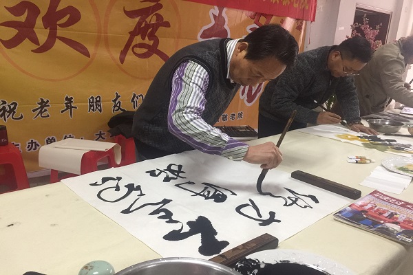 活動現場,安徽公麟美術研究院黨支部書記朱敏夫等書畫界知名人士現場揮毫潑墨,或筆走龍蛇、大氣磅礴,或工筆縝密、情趣盎然,一張張力透紙背的書法作品,一幅幅惟妙惟肖的繪畫作品躍然紙上,在場的老人們都被書畫家的精湛技藝所折服,被他們的熱情所感染。