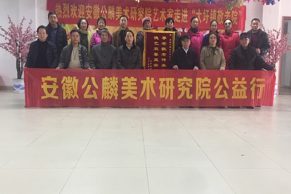 2019年11月26日,由大圩敬老院黨支部牽頭,安徽公麟美術研究院黨支部的黨員書畫家們來到大圩敬老院開展獻愛心活動,書畫家們用一幅幅酣暢淋漓、寓意吉祥的書畫作品為老人們送去了祝福。