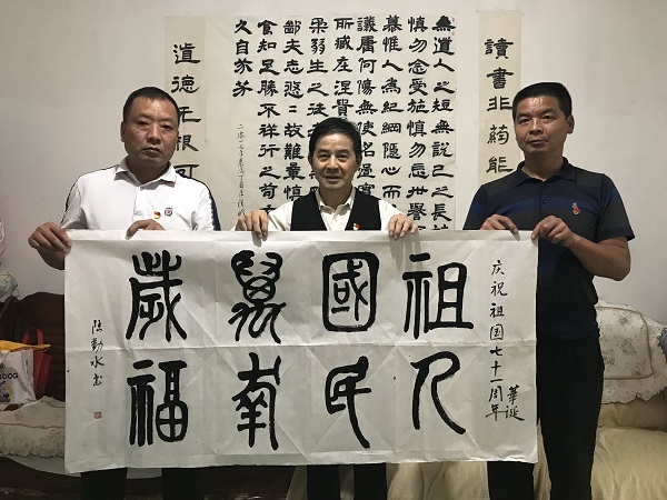 陸集社區老黨員陸勤水、包河花園社區年輕黨員束慶慶都是與新中國同一天生日,為了紀念這個特別的日子,他們以書法和繪畫來表達這份驕傲與自豪。