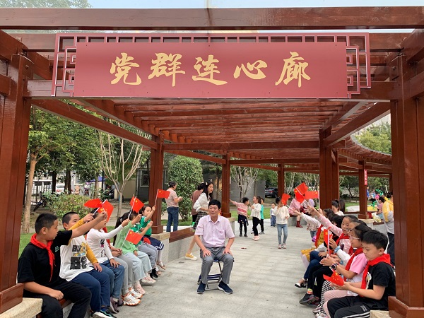 自2019年紅色領航和美小區建設工作開展以來,包河花園社區黨委借助小區環境提升工程,設立百姓宣講廊、黨群連心廊、協商議事廊,將服務站建在居民“家門口”。9月25日下午,社區黨委邀請退休教師、老黨員梁英俊在小區A區黨群服務站黨群連心廊為社區兒童們開展《致敬新中國 展望新時代》的愛國主題宣講活動。