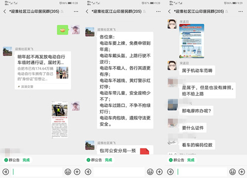 社區利用居民微信群、共治交流群向居民及轄區單位宣傳電動自行車上牌內容,推送小學生步行、中學生騎行和老年人步行典型交通事故案例,使不同年齡層次居民了解知危險會避險。
