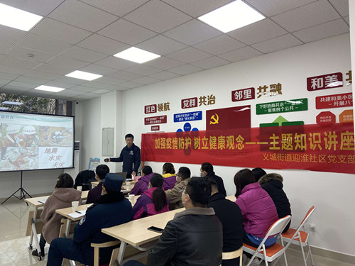 為有效落實健康中國戰略部署要求,提高全民健康水平,倡導健康生活理念,加快推動從“治病”到“防病”的轉變,1月26日上午,義城街道迎淮社區黨支部特開展“加強疫情防護,樹立健康觀念”主題講座,社區疫情防控一線工作者10余人參加了活動。