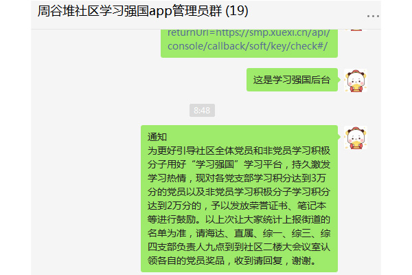 線上針對非本單位的黨員同志,通過微信群發送活動通知,讓社區志愿者將獎品送到學習達人家中。