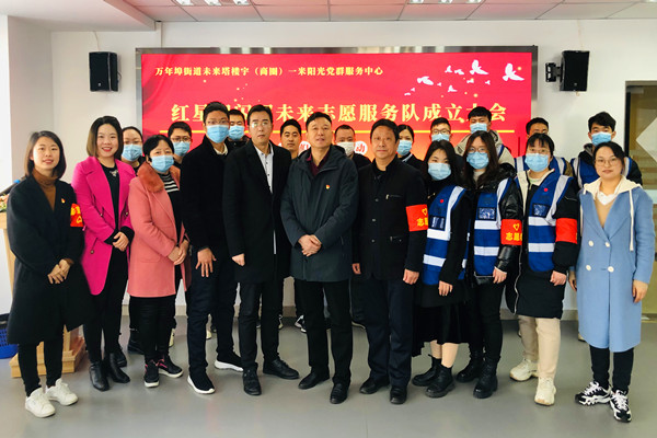 紅心閃閃照未來,凝心聚力放光彩。萬年埠街道樓宇(商圈)黨群服務中心以雷鋒日為契機,傳播、倡導、弘揚、普及志愿者服務精神,凝聚未來塔非公企業黨員與員工力量,成立“紅星閃閃照未來”志愿服務隊并舉行成立儀式,為日后持續開展扶危濟困、敬老助殘、城市管理、便民服務、環境保護等為主的一系列志愿服務工作增添濃厚的一筆。同時,為進一步強化企業黨員及員工的志愿服務思想意識、提高志愿服務活動水平、鼓勵非公企業隊伍中更多黨員和白領加入志愿者隊伍、提升志愿者隊伍整體素養、優化志愿服務活動的開展,提供了源源不斷的支持,讓樓宇開展志愿服務活動步入良性循環,進而長效運作,永放光彩。
