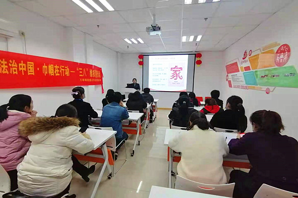 關愛女性,巾幗在行動。為建設法治中國,增強社區女性居民法治觀念,提高法律維權意識及維權能力。3月4日下午,在云華社區“一米陽光”黨群服務站開展婦女《權益保障法》《婚姻法》等普法講座,引導社區女性尊法學法守法用法,樹立健康文明的婚姻家庭觀念。營造了“快樂一個女性、幸福一個家庭、和諧一個社會”共建文明和諧家庭的良好氛圍,讓社區女性同胞感受到黨組織的關心關愛。