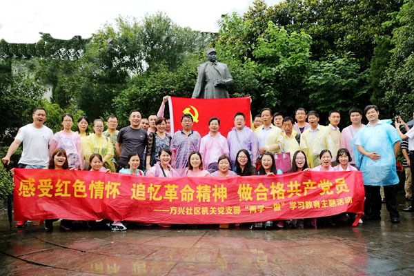 在葉挺將軍像前,方興社區機關黨支部重溫入黨誓詞并合影留戀。通過此次教育活動,方興社區支部黨員緬懷了革命先烈,接受了愛國主義教育和黨性的洗禮,更加深刻地體會了老一輩無產階級革命家的優良傳統,進一步堅定了理想信念,黨支部增強了凝聚力和戰斗力。
