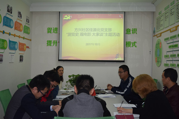 為深入推進“兩學一做”學習教育常態化制度化,樹立優秀共產黨員楷模,發揮先進典型示范作用,10月16日晚上,方興社區佳源北黨支部開展了“測黨史 看電影 大家談”主題活動,加強黨性教育。