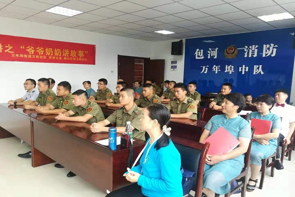 2019年7月16日下午萬年埠街道消防中隊二樓會議室歌聲嘹亮、頌歌飛揚,戰士們風姿颯爽、居民們豪情滿腔,這是萬年埠街道萬慈社區“益念”紅色詩文朗讀社走進消防中隊,針對消防戰士們進行的紅色宣講專場--頌歌獻給親愛的黨。