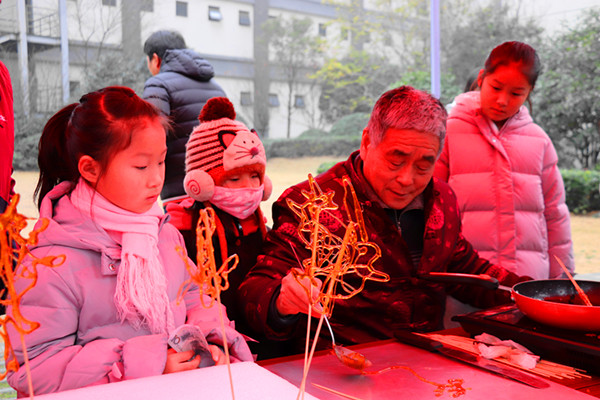 活動(dòng)現(xiàn)場(chǎng),不僅有社區(qū)書法老師及書法愛好者書寫春聯(lián)免費(fèi)送給轄區(qū)居民,還有剪紙、糖畫、面塑、棕編、葫蘆雕畫等非遺文化展示,將濃濃的節(jié)日氛圍送進(jìn)小區(qū),讓中華優(yōu)秀傳統(tǒng)文化發(fā)揚(yáng)光大。活動(dòng)中,孩子們手中的毛筆書寫出一張張對(duì)聯(lián),美好的新年祝福躍然紙上;多名合肥市非遺傳人向社區(qū)居民展示了各自的獨(dú)門絕技,其中殷師傅的糖畫吸引了現(xiàn)場(chǎng)不少群眾,由于造型多樣,口味香甜,受到了小朋友們的喜愛。