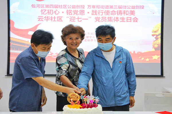 疫情防控期間,萬(wàn)年埠街道云華社區(qū)黨員紛紛主動(dòng)請(qǐng)戰(zhàn),參與一線值守,為社區(qū)筑起一道堅(jiān)不可摧的抗疫紅色防線。在“七一”黨的生日來(lái)臨之際,為慶祝建黨99周年,弘揚(yáng)抗疫黨員的榜樣精神,6月28日上午,萬(wàn)年埠街道云華社區(qū)黨總支聯(lián)合實(shí)創(chuàng)公益黨支部、社區(qū)婦聯(lián),在云華社區(qū)臨湖苑C區(qū)一米陽(yáng)光黨群服務(wù)站,開(kāi)展“憶初心·銘黨恩·踐行使命鑄和美”迎七一黨員集體生日會(huì),參與一線抗疫的黨員、社區(qū)老黨員度過(guò)了一個(gè)特殊意義的集體“政治生日”。