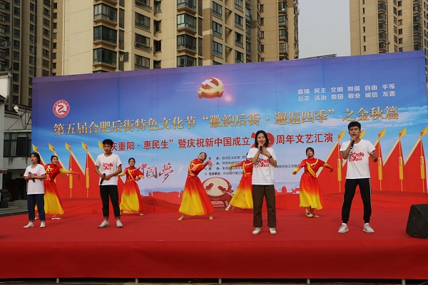 為熱烈慶祝中華人民共和國成立70周年,豐富轄區居民的精神文化生活,打造構建和諧品質社區。9月25日下午,朱崗社區舉辦第五屆合肥后街特色文化節“徽韻后街﹒邂逅四季”之金秋篇“慶重陽惠民生”暨慶祝新中國成立70周年文藝匯演。