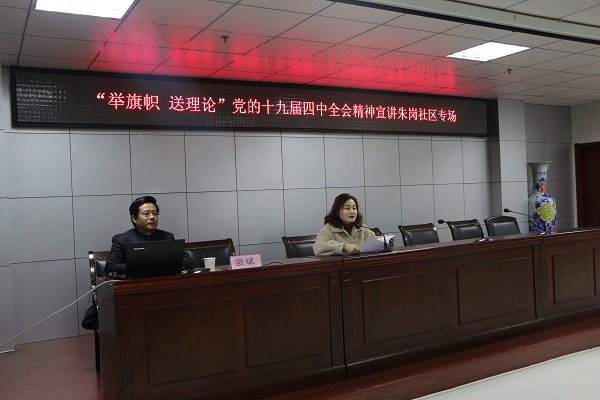 12月30日下午,“舉旗幟·送理論”黨的十九屆四中全會精神宣講報告會走進朱崗社區。此次報告會由市委黨校現代科技與文化教研部主任裴斌教授作宣講報告,社區黨委委員毛菡菁主持報告會。社區兩委成員、各支部書記(含非公企業和社會組織)、直屬支部、物業支部全體黨員參加了宣講。