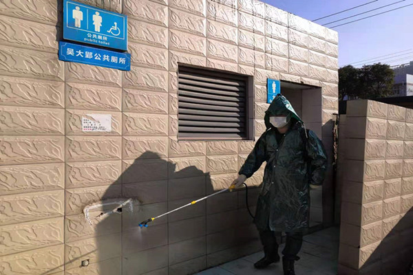和沈爾芬一樣,丈夫吳國強也是抗戰在一線的基層工作人員,從年三十開始,小倆口便犧牲休息時間,奮不顧身加入疫情“阻擊戰”中。作為一名黨員,吳國強主動承擔起了小區各樓棟消毒的工作,文昌新村為老舊小區沒有電梯,每天清晨,吳國強背著裝滿消毒液的噴霧器,挨個樓棟爬上爬下,認真進行著消毒工作,經常一個樓棟消毒下來,已是大汗淋漓。