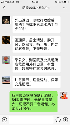 每天,群內(nèi)成員都積極報送、轉(zhuǎn)發(fā)轄區(qū)居民最關(guān)心、最需要的防疫信息。紀(jì)委委員胡正紅正對居民報送至群里的信息進行登記,“不在轄區(qū)的居民,我們會讓他共享實時位置來了解行蹤軌跡。處在隔離觀察期的人員,需要每日拍攝測試的體溫發(fā)送到群內(nèi)。線下需要宣傳的防疫信息我們在線上也能很好的落實。”胡正紅說。截止到2月18日,群內(nèi)成員累計轉(zhuǎn)發(fā)、參與線上防疫信息1000余次,大家也紛紛呼吁親朋參與到行動中,讓疫情防控更加深入人心。