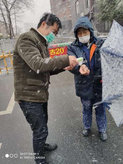來自市建投集團的付聰被安排到人員密集且復雜的吳大郢城中村配合參與疫情防控工作,老舊城區疫情防控難點在于沒有大門,沒有隔欄,全靠人力支援,且外來人口及租房戶較多,人員復雜,較難管理。為了嚴格把控城中村外來人員進出,社區在各出入口搭建活動板房,建立疫情防控工作點,嚴防死守,采取封閉式管理模式。起初,人員進出需憑出入證,每戶每周領取三張票,對來往進出人員進行體溫測量、信息登記等工作,遇到不理解的居民,他會主動上前,耐心解釋,經常一天下來,喝不上一口水。由于近期需普及安康碼使用工作,后期進出小區需憑碼進出,許多年齡大的居民對手機等通訊工具操作不熟悉,付聰會主動幫助他們下載注冊,在吳大郢出入口的卡點,你總能看見他那忙碌的身影。