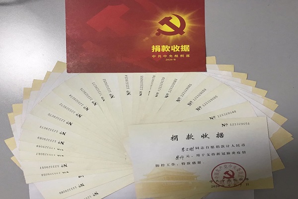 近期,安徽萬振建設集團黨支部33名黨員同志收到印有中共中央組織部紅色印章的“捐款收據”,面對一張張有編碼的證書,廣大黨員歡欣鼓舞,倍感振奮。