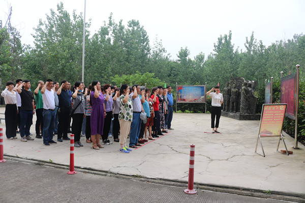 全體黨員們佩戴黨徽,莊嚴肅立,舉起右拳面對鮮紅黨旗,重溫入黨誓詞,接受黨性洗禮?;仡櫲朦h時的莊嚴承諾,再一次體會作為一名共產黨員的責任感和使命感。