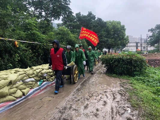 7月18日,合肥突降暴雨,南淝河水平告急。“小阿嫂幫幫團”負責防汛宣傳、幫扶受困群眾的同時,還與社區工作人員一起裝沙袋、背沙袋沖在防汛一線,為加固南淝河河堤出一份力。