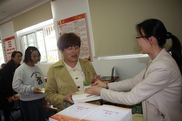交流發言后,大家將書簽夾入舊書扉頁,依次上臺領取了新書了和綠植。工作人員將收集到的舊書捐贈到社區圖書室,充實社區藏書。“這次的讀書日活動也進一步激發了黨員讀書的興趣,大家多在一起交流心得,黨史教育一定會推進的更加扎實、深入、有成效。”社區黨委委員劉光娟表示。