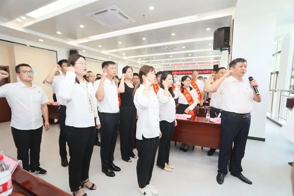 “我志愿加入中國共產(chǎn)黨,擁護(hù)黨的綱領(lǐng),遵守黨的章程,履行黨員義務(wù)……”錚錚誓言,初心所向,在望湖街道黨工委書記李幸松同帶領(lǐng)下,今年新發(fā)展的8名預(yù)備黨員面向黨旗、高舉右手,鏗鏘宣誓。全體黨員起立,重溫入黨這一神圣時(shí)刻。
