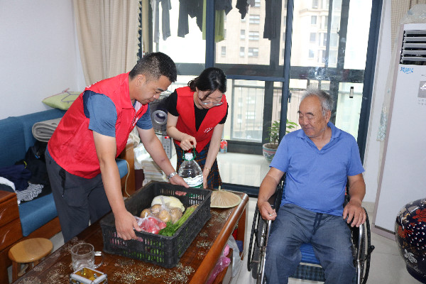 家住文昌雅居小區(qū)的王成祥老人今年76歲,子女都不在身邊,平時(shí)和老伴一起住,出門(mén)都要坐輪椅,行動(dòng)十分不便。為了保障王成祥老兩口在臺(tái)風(fēng)天氣不出門(mén)就能吃上新鮮的蔬菜,社區(qū)工作人員和志愿者們?yōu)槔先怂腿?/span>蔬菜和水,并再三囑咐老人:臺(tái)風(fēng)天雨大路滑,不要出門(mén),如果有需求可以隨時(shí)與居委會(huì)聯(lián)系。