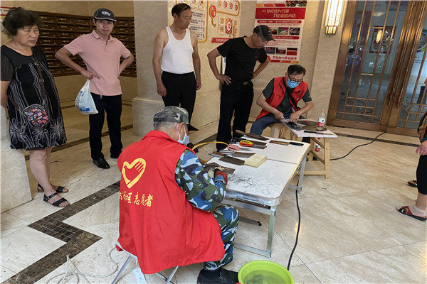 志愿服務地點設置在高速時代城小區主樓大廳,服務內容有家電維修、特殊人群免費理發、磨刀磨剪子、健康義診等貼近居民生活需求的便民服務。服務現場,居民把家中的熱水壺、電飯煲等小家電拿過來修理,磨刀磨剪子處已經排成了長龍,醫務志愿者為轄區篩查白內障、檢查眼部、測量血壓,耐心地回答各類健康問題。理發師們細心地為老人們系好圍布,一邊熟練地幫老人理發,一邊聊起了家常,讓老人們切身感受到家門口志愿服務帶來的方便。