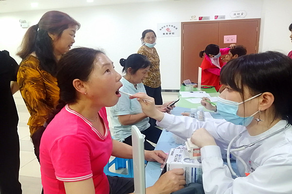 在義診區,前來咨詢的居民自覺排隊,主動配合,醫生志愿者們細心傾聽病情,耐心解答健康問題,為居民進行口腔檢查、測血壓、測血糖等,對于血壓偏高的居民,醫生現場給予飲食、用藥建議,講解高血壓、糖尿病的危害及預防措施,提高群眾對高血壓病的認識,并為前來咨詢的居民講解口腔日常保健和疾病預防知識,叮囑他們日常生活中要健康飲食、注意清潔口腔,定期到醫院做詳細檢查,養成健康的生活習慣。
