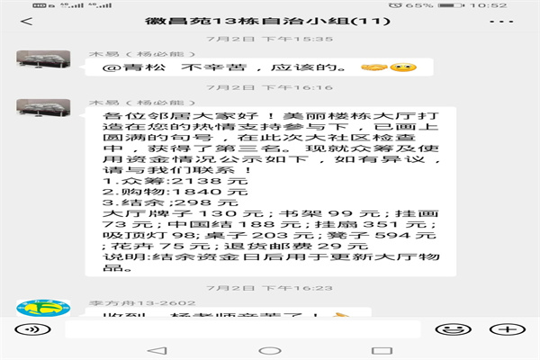 徽昌13棟居民在徽昌苑小區黨支部的牽頭下,召開了樓組見面會等線上線下一系列有成效的討論、交流,推選樓組長,建立由樓組長、熱心居民、物業及居委會成員等組成的自治小組,討論樓棟打造方案,共同籌集樓棟打造資金,在大家的共同努力之下,樓棟煥然一新。定制的書柜,擺放著各類書籍以及綠植,營造書香氛圍;透明玻璃掛上具有藝術特質的畫以及中國結,平添幾分優雅。精美打造后也讓小廣告無處遁形。這方小小天地,成了大家閑暇之余必來的歡余之地。