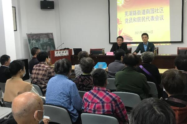 10月14日上午9點,蕪湖路街道南園社區召開黨員和居民代表會議,會議由蕪湖路街道黨工委委員宰練軍主持。