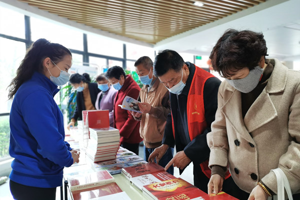 本次活動現(xiàn)場展出《革命者》《守初心擔使命》《紅星照耀中國》等系列黨史讀物,帶領我們回顧中國共產(chǎn)黨從開天辟地到劈波斬浪奮勇前行的百年征程,揭曉英雄背后鮮為人知的犧牲奉獻。一本本圖書都在訴說著一段崢嶸歲月,一個個英雄都引領我們不忘初心,牢記使命,活動引得社區(qū)老黨員、社區(qū)居民紛紛駐足。
