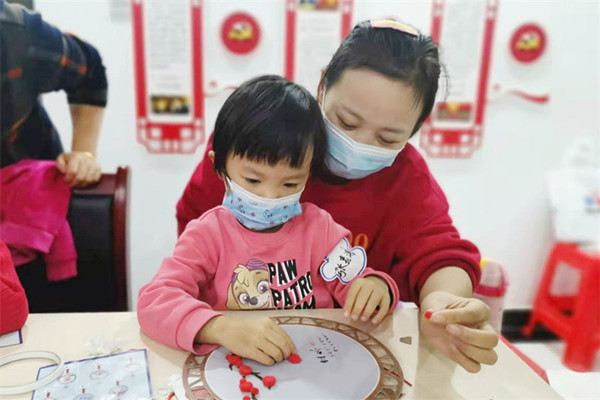 活動開始,老師從二十四節(jié)氣歌引入今天的主題——立冬,并通過圖片、視頻向孩子們介紹立冬節(jié)氣的由來、氣候的變化、人們對不同節(jié)氣的視覺感受和觸覺感受。“作為二十四節(jié)氣中的第十九個(gè)節(jié)氣——立冬,意味著生氣開始閉蓄,萬物將進(jìn)入休養(yǎng)、收藏狀態(tài)。其氣候也由秋季少雨干燥向陰雨較多的冬季氣候轉(zhuǎn)變。許多耐寒花朵,也慢慢競相開放。今天我們將制作紅梅白雪手工制作為主題……”在老師耐心指導(dǎo)下,小朋友們充分發(fā)揮自己的想象力和創(chuàng)造力,根據(jù)自己喜好制作出“獨(dú)一無二”的紅梅圖。遇到的問題和困難時(shí),志愿者老師耐心細(xì)致地為大家講解,不一會兒,一幅紅梅白雪手工掛飾從孩子們手中誕生。創(chuàng)作完成后,老師會讓孩子們提起自己制作的立冬掛飾,互相欣賞、交流制作心得體會。