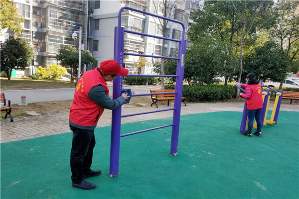 活動(dòng)中,黨員志愿者們自帶清理道具,分工合作,認(rèn)真擦洗健身器材和廣告牌,用自己的辛苦付出換來(lái)了小區(qū)整潔的健身環(huán)境;在清理過(guò)程中,對(duì)于有的健身器材螺絲松動(dòng)等問(wèn)題,及時(shí)進(jìn)行相應(yīng)的處理措施,確保小區(qū)居民使用期間的安全性,給小區(qū)居民營(yíng)造一個(gè)良好的鍛煉環(huán)境。