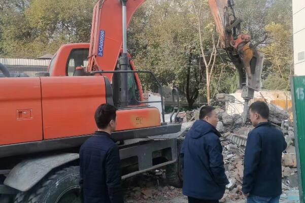 此建筑由于建成時間久遠,擠壓管道且緊鄰住宅樓,未達安全距離,安全隱患問題突出。社區經前期隱患摸排后,積極協調多方,聯系安排施工人員到現場實地勘察,制定了拆除方案,并于當日出動大型施工機械對隱患建筑展開拆除工作。