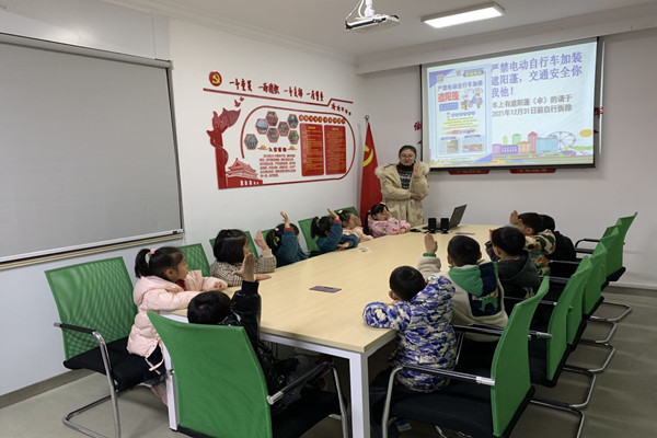 小手拉大手,文明安全一起走。“小朋友們,今天我們學習了交通安全知識,如果家里電動車上有安裝遮陽篷的,小朋友們知道應該怎么樣做嗎?”“這樣是不對的,因為不安全,回家我要和爸爸媽媽說,拆除遮陽篷,做個文明出行的人”。佳源北黨總支通過給孩子們開展交通安全宣傳,讓孩子們做安全文明出行的“小使者”。