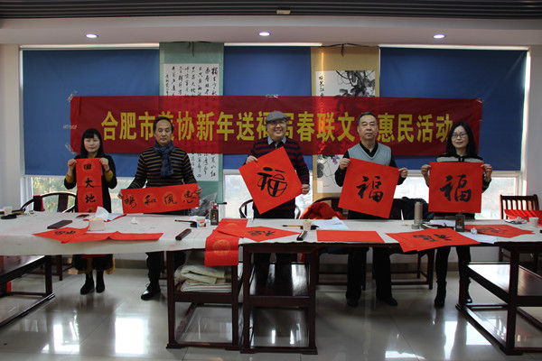 活動現場,翰墨飄香,來自合肥市美術家協會的書法家們盡情的揮毫潑墨,隨著筆鋒或抑或揚,鏗鏘有力,令人贊不絕口。“一帆風順年年好,萬事如意步步高”“民安國泰逢盛世,風調雨順頌華年”“喜居寶地千年旺,福照家門萬事興”等等一幅幅寓意吉祥的春聯和飽含神韻的“福”字新鮮出爐了。這些飽含年味、滿載祝福的春聯和“福”字,一部分由社區黨委主要負責人帶隊,上門贈送給轄區困難居民,向他們送上新春佳節的祝福和問候;另一部分贈送給為和美小區建設做出貢獻的志愿者們,向他們一年的辛勤付出表示感謝!